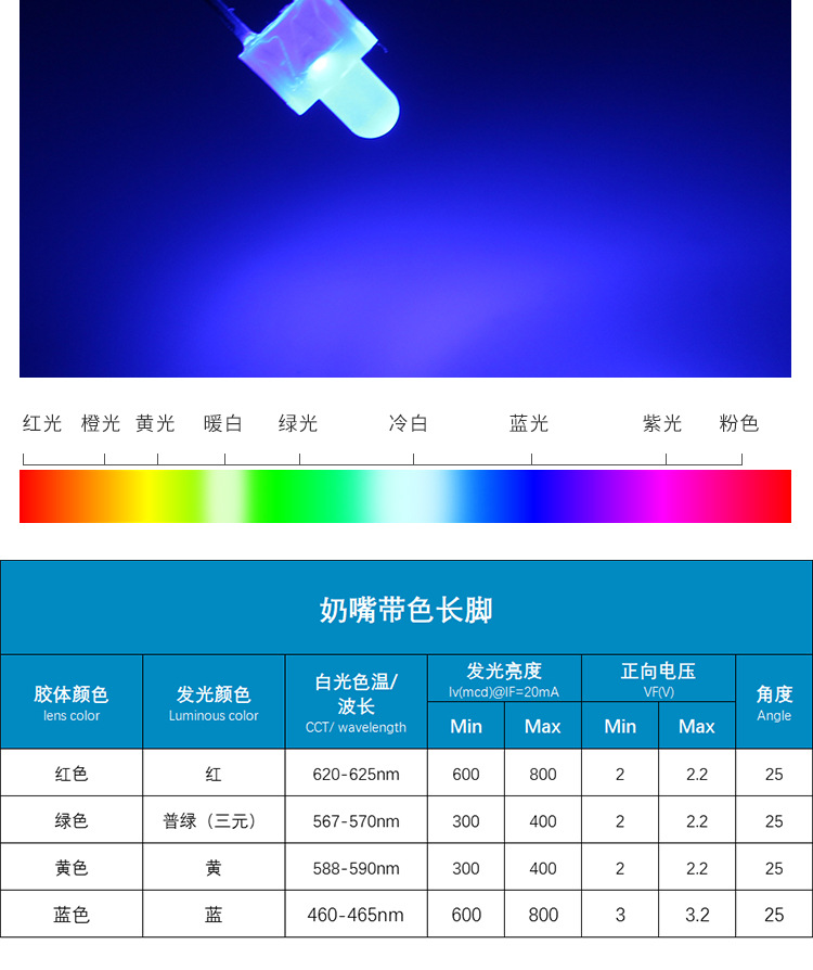 奶嘴型透明封装,散射角度广(120°-140°)