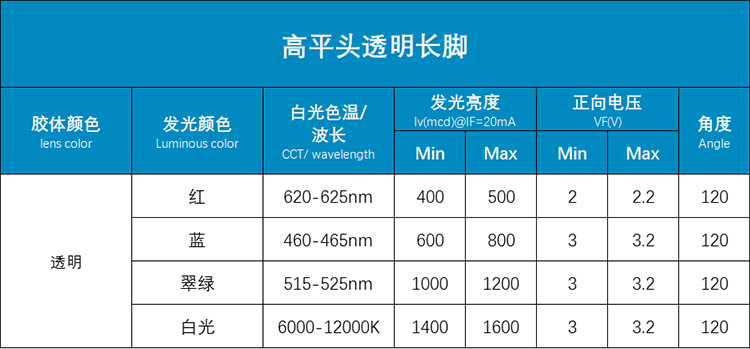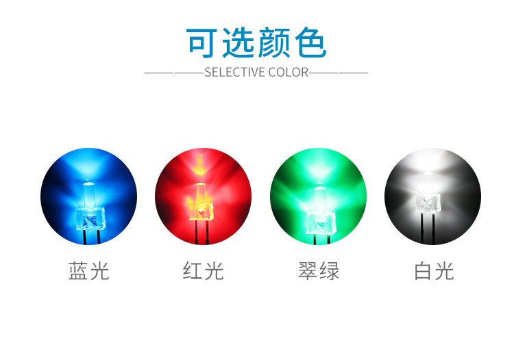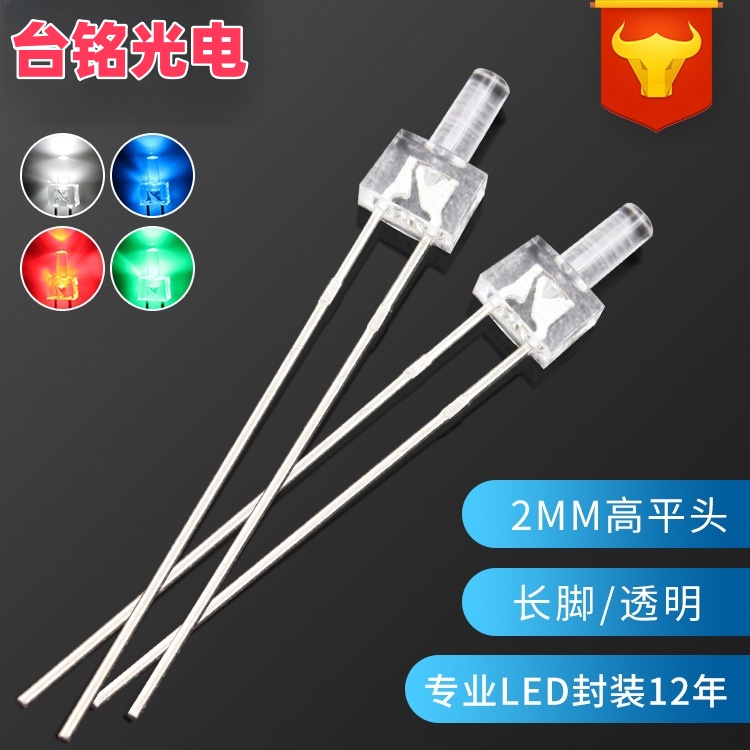 F2/2MM高平头透明长脚 白发红蓝绿白光 LED直插灯珠