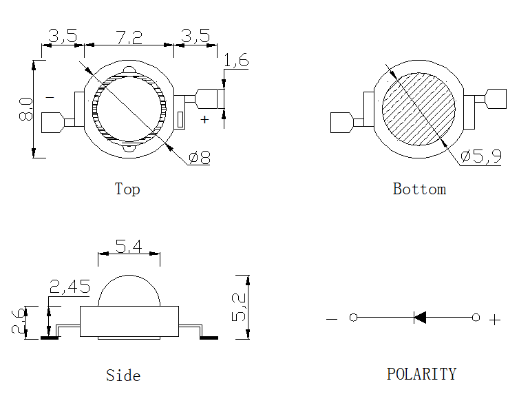 为了确保LED 光电性能,请保持LED 发光区表面清洁,避免手指印或其他异物覆盖。