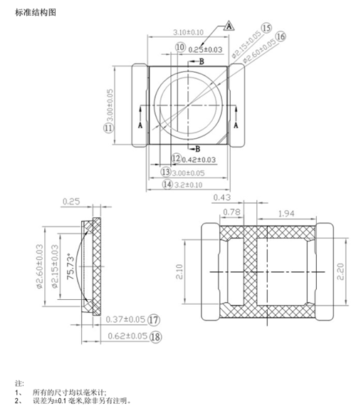 为了确保LED 光电性能,请保持LED 发光区表面清洁,避免手指印或其他异物覆盖。
