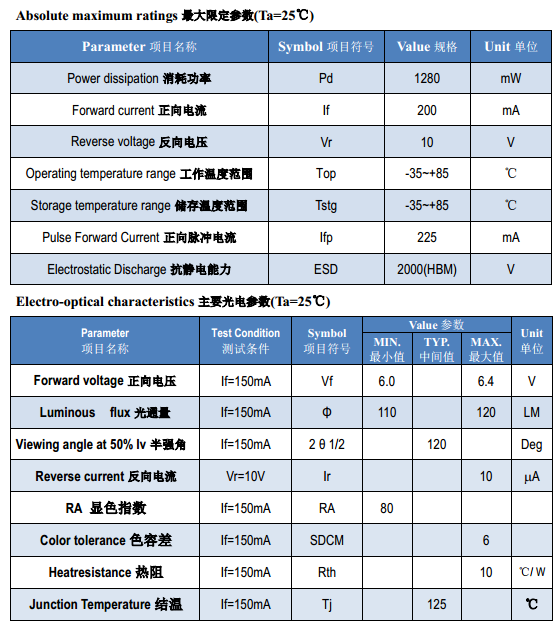 为了确保LED 光电性能,请保持LED 发光区表面清洁,避免手指印或其他异物覆盖。