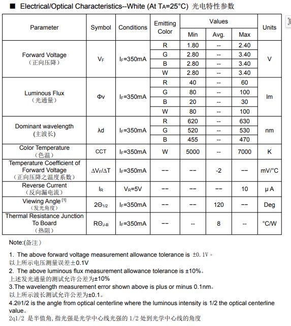 为了确保LED 光电性能,请保持LED 发光区表面清洁,避免手指印或其他异物覆盖。