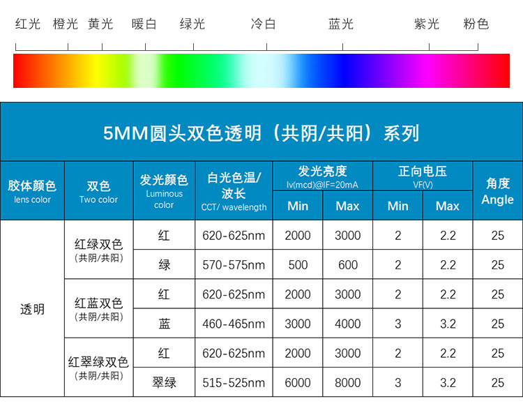 共阳型:1脚为共用阳极(VCC),2/3脚分别接红/绿阴极。